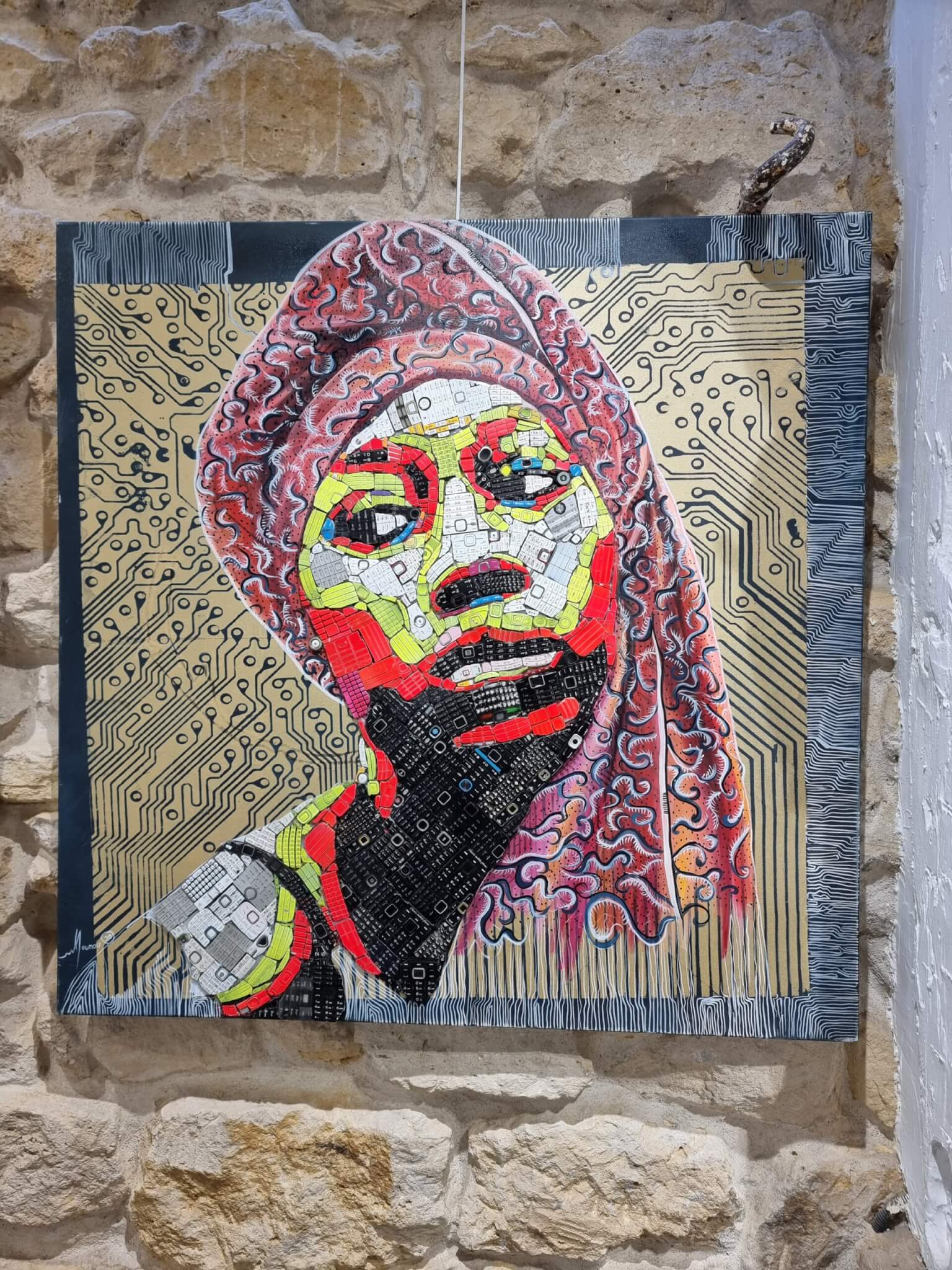 Mounou Désiré Koffi est un artiste de l’art du recyclage aussi appelé « Art du déchet ». Il combine peinture traditionnelle et assemblage de matériaux de récupération.