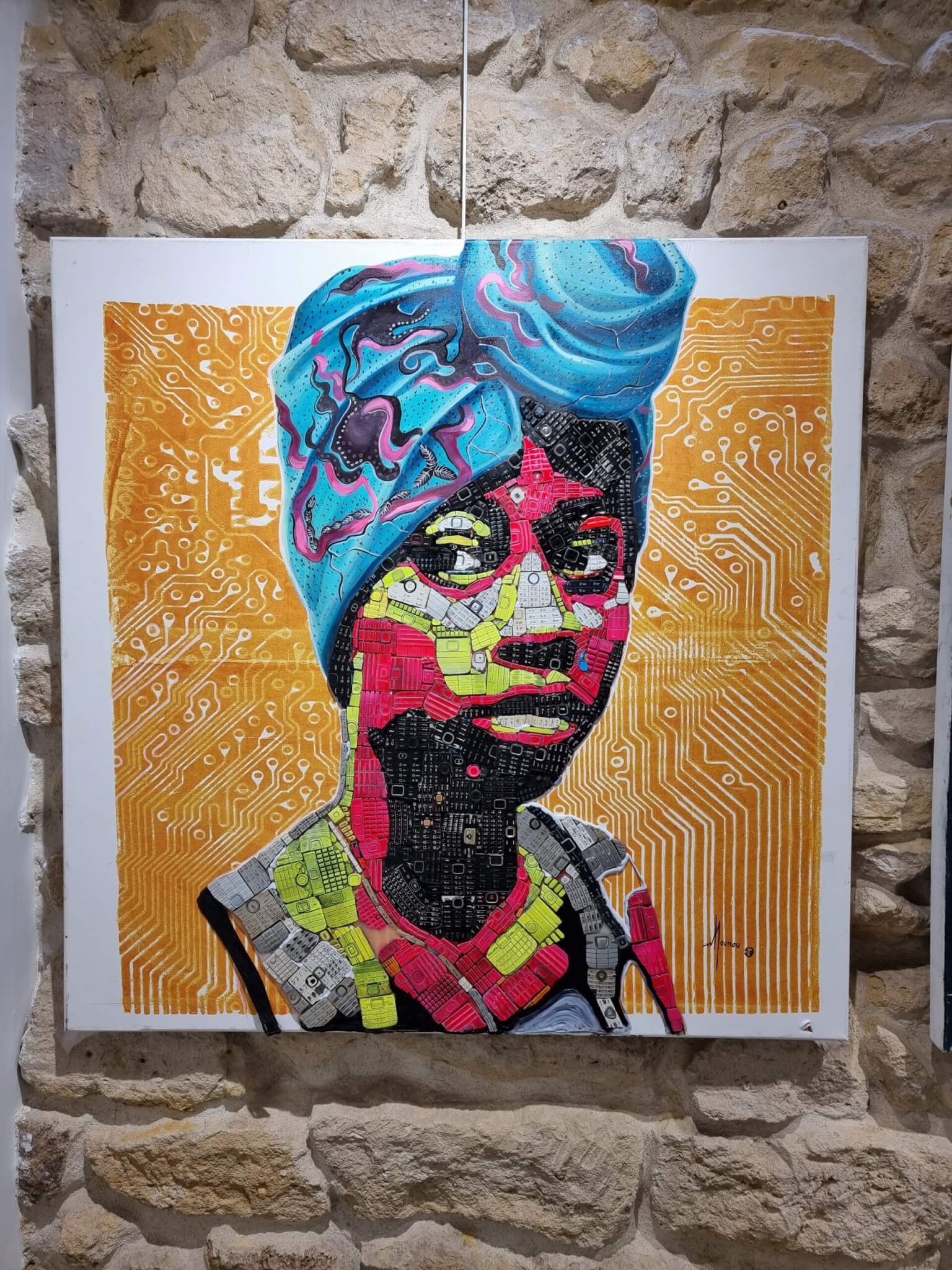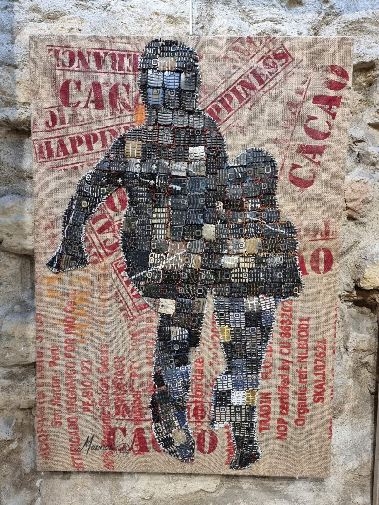 Major diplômé de l’École des Beaux-Arts d’Abidjan, il surcycle les pièces détachées d’outils électroniques hors d’usage, afin d’en faire des œuvres d’art d’une qualité esthétique indéniable. Le plus souvent, il s’agit de claviers de téléphones portables d’ancienne génération ou d’écrans tactiles. L’artiste effectue ses collectes dans les rues d’Abidjan. Pour quelques pièces, il achète aussi auprès des déchetteries locales.